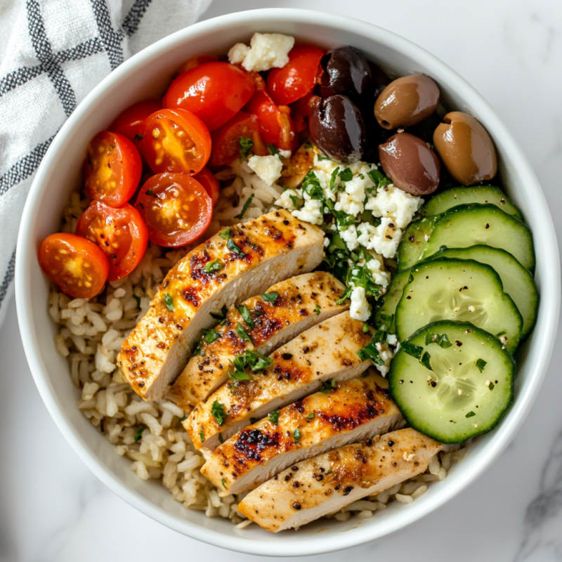 Nutritional Highlight: Olive oil and feta provide healthy fats, while chicken delivers lean protein for satiety and energy.