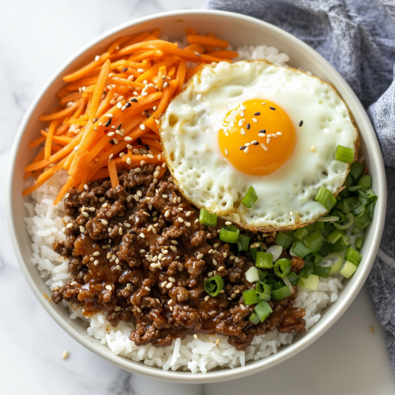 Korean Beef Rice Bowls are full of bold flavors with a sweet-savory marinade. Lean ground beef paired with vegetables makes a filling, protein-packed meal.